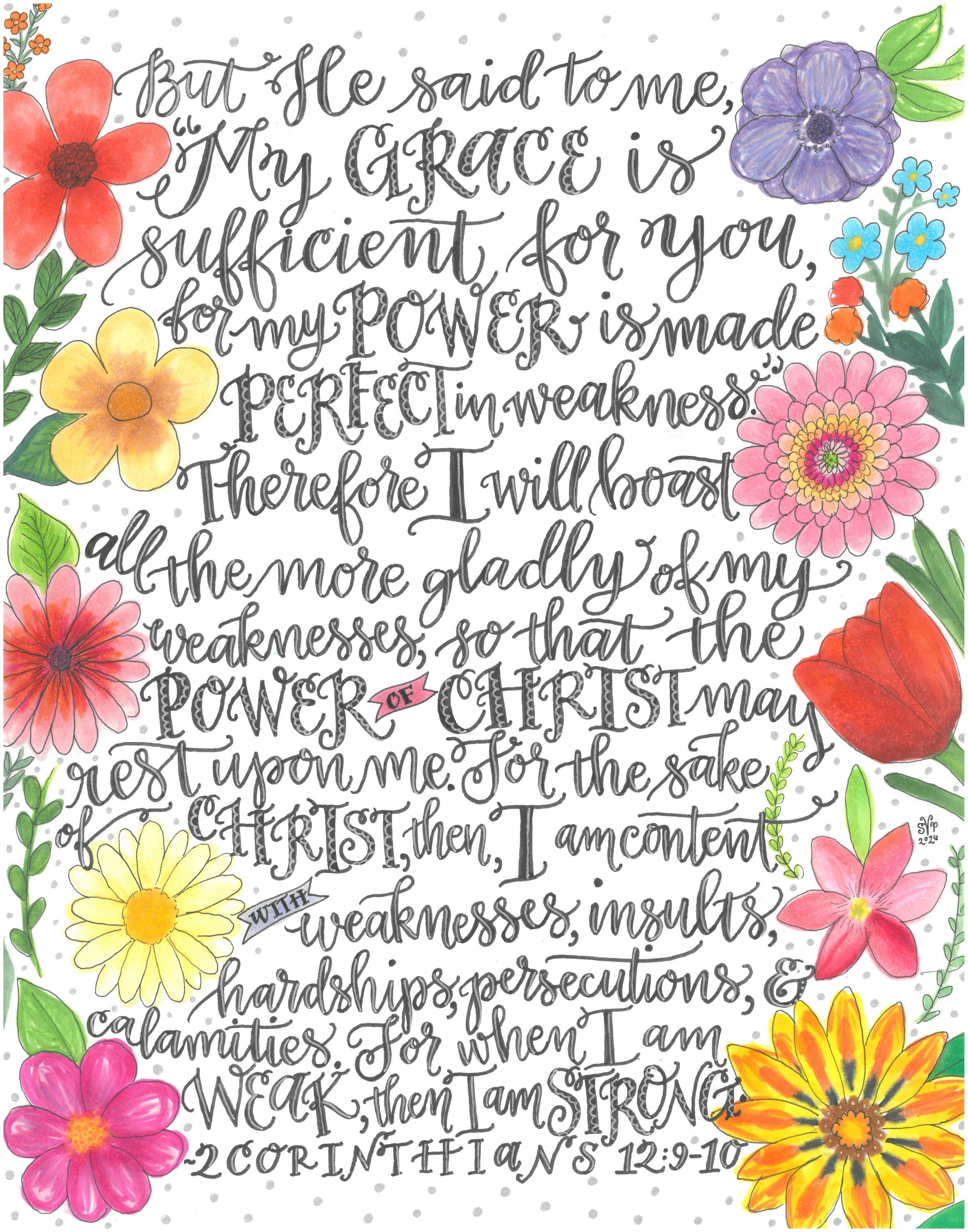 2 Corinthians 12:9-10 My Grace Is Sufficient For You, Bible Verse Printable, Hand Drawn, Instant Download