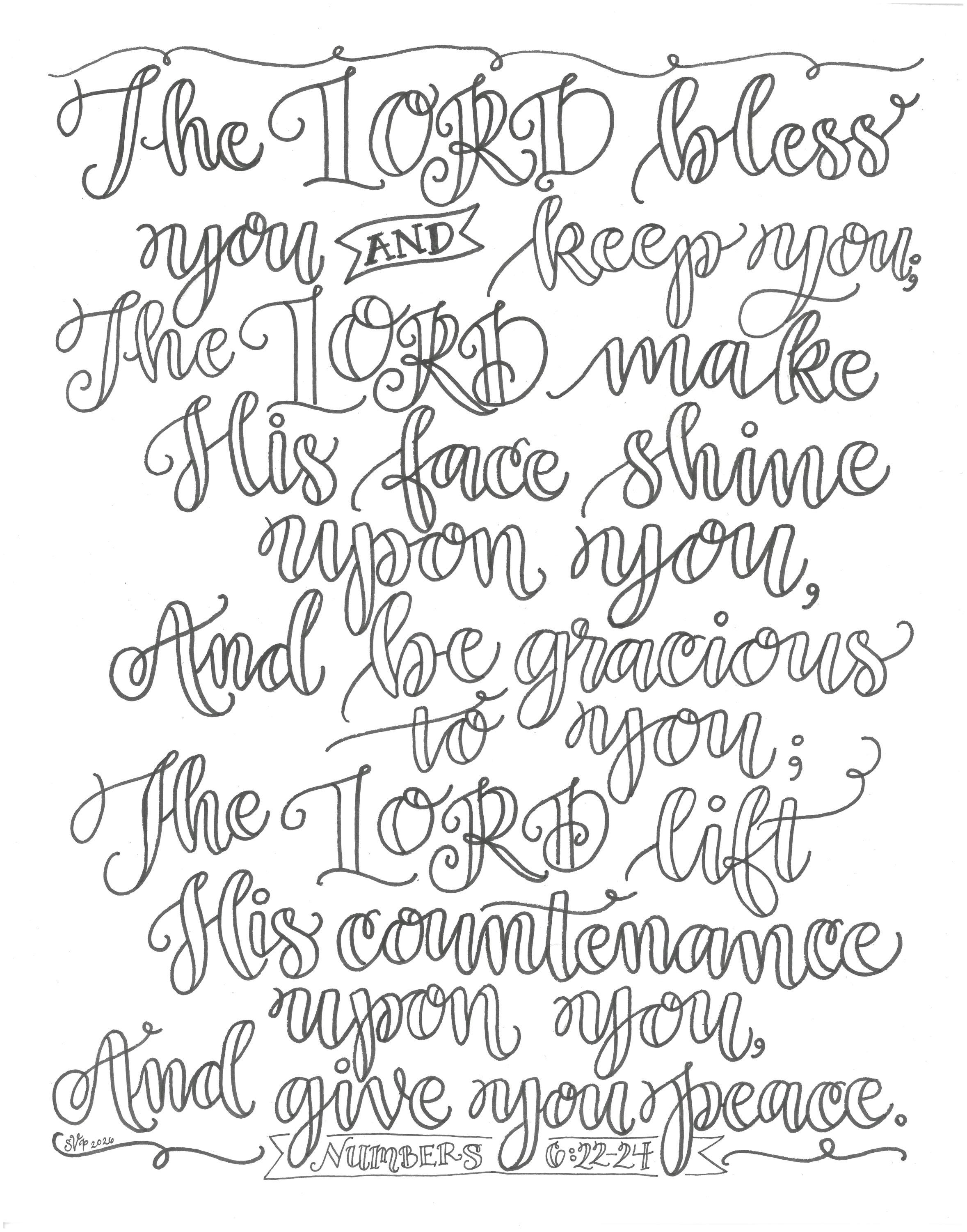 Adult Coloring Page - Numbers 6:22-24 The Lord Bless You